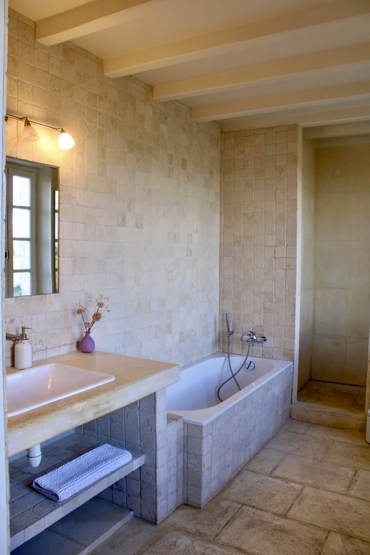 - Sa salle de bain en pierre de taille de Fontvielle